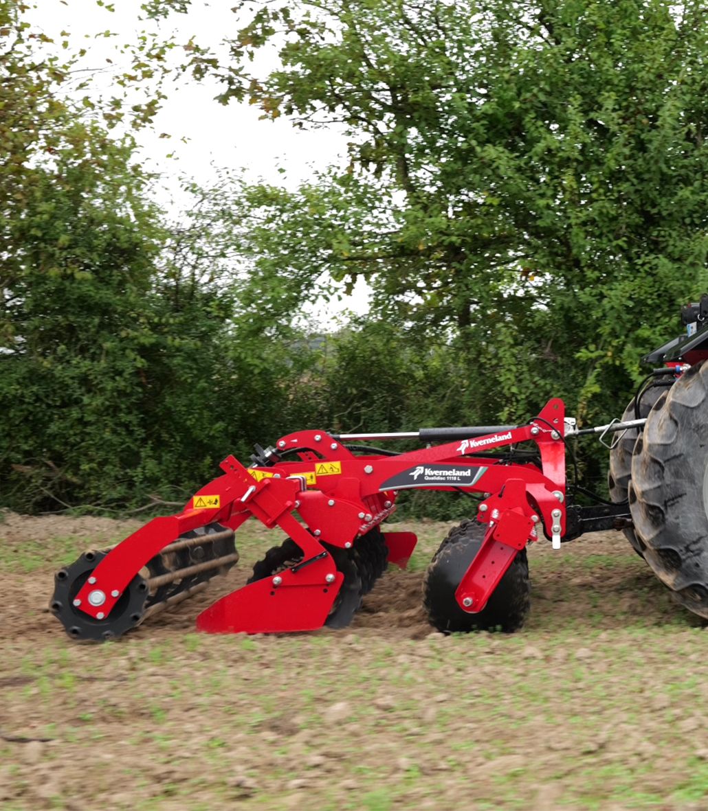 La Kverneland Qualidisc 1100 L es una grada rápida con discos individuales, compacta suspendida y ligera, disponible en anchos de trabajo de 1,75 y 2,25 m con discos de acero templado endurecido de Ø520mm que consiguen excelente penetración y mezcla del suelo. Los deflectores laterales, los rodillos, los discos en estrella o los discos dentados (todo ello, variantes de configuración), garantizan excelentes resultados uniformes adaptados a los condicionantes de cada explotación. El rodillo puede plegarse sobre la máquina y así circular de forma segura y facilitar los giros en cabecera. El sencillo ajuste de la profundidad, los cojinetes que no requieren engrases periódicos y un único punto de engrase en toda la máquina, facilitan el funcionamiento y el mantenimiento en el mínimo de tiempo posible. Duradera, eficiente y adaptable, la grada rápida Kverneland Qualidisc 1100 L es ideal para campos pequeños, calles entre árboles y viñas, campos medianos y explotaciones especializadas.