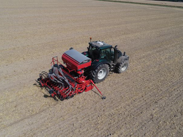 La sembradora Kverneland e-drill maxi plus permite la aplicación combinada de semillas y abono en una sola pasada.